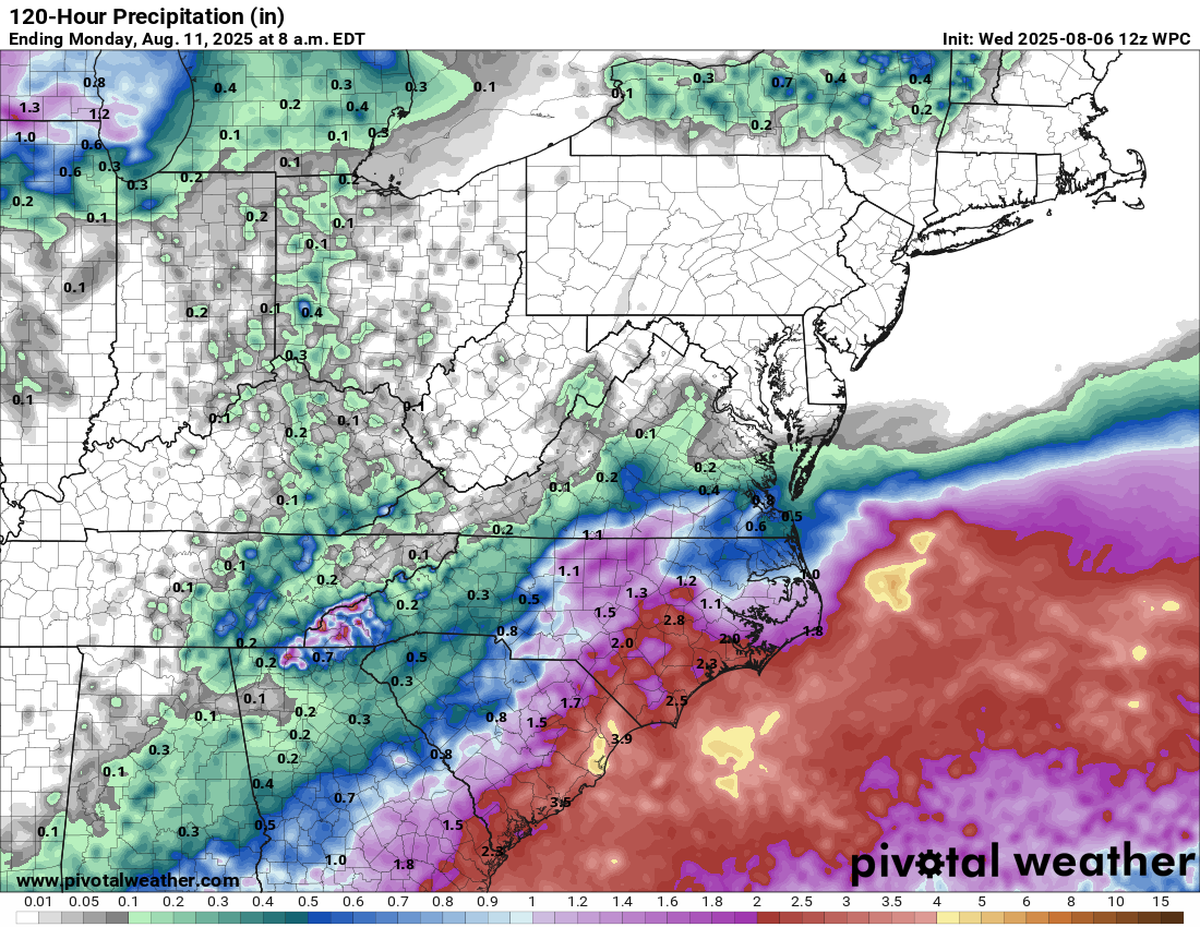 The main impact from this system, whether it develops or not, will be locally heavy rainfall and rip currents. Rainfall totals of 2 to 4 inches look likely along the immediate coasts of North Carolina and South Carolina from Thursday through Sunday.