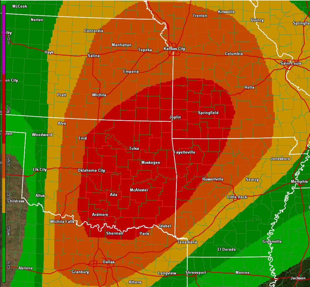 A Tornado Outbreak Is Likely Across Central & Eastern Oklahoma, North Texas, Southeast Kansas, Southwestern Missouri & Northwestern Arkansas This Afternoon Into This Evening