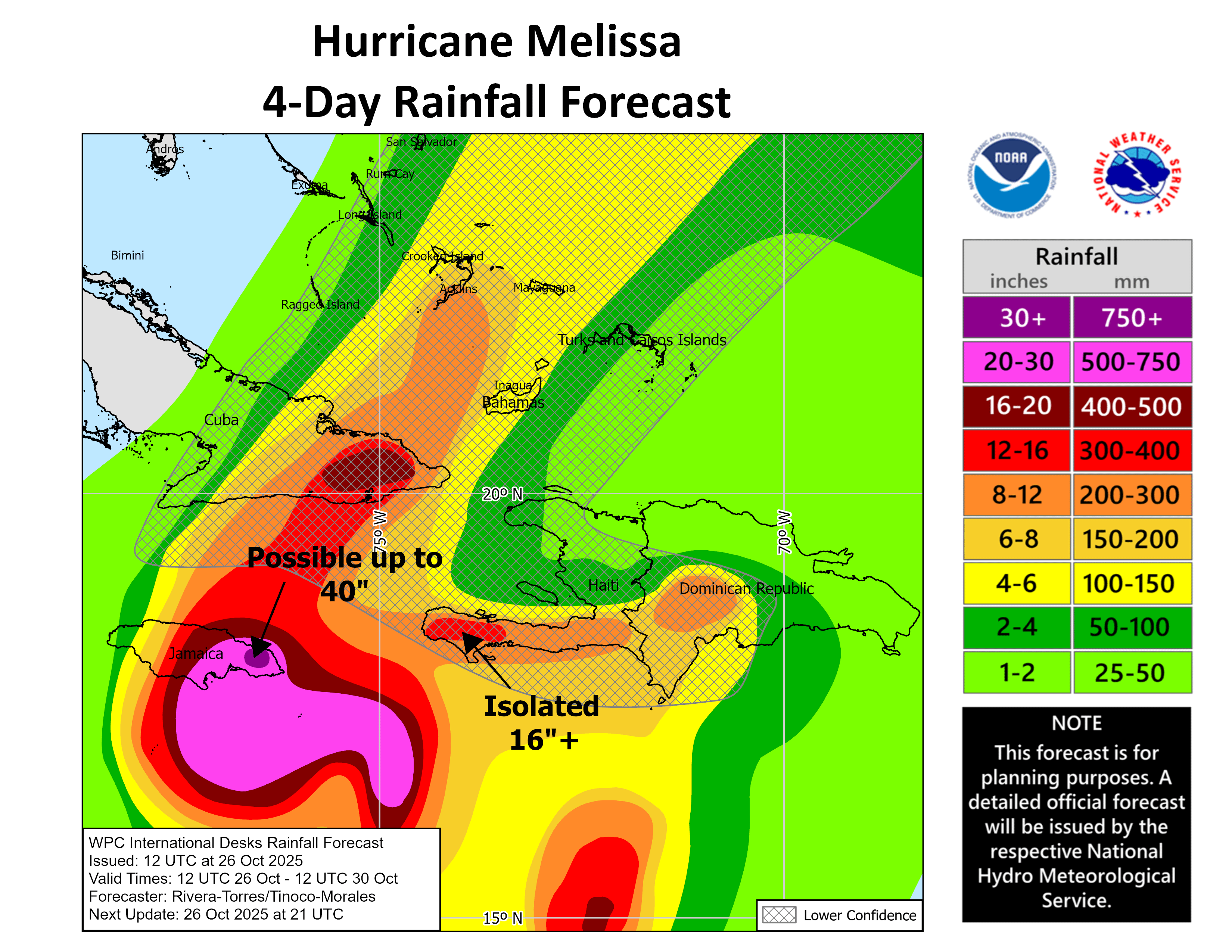The impacts from Melissa in terms of Category 4 to Category 5 strength winds, a very high storm surge & catastrophic flooding from rainfall could be one of Jamaica’s most destructive hurricanes.