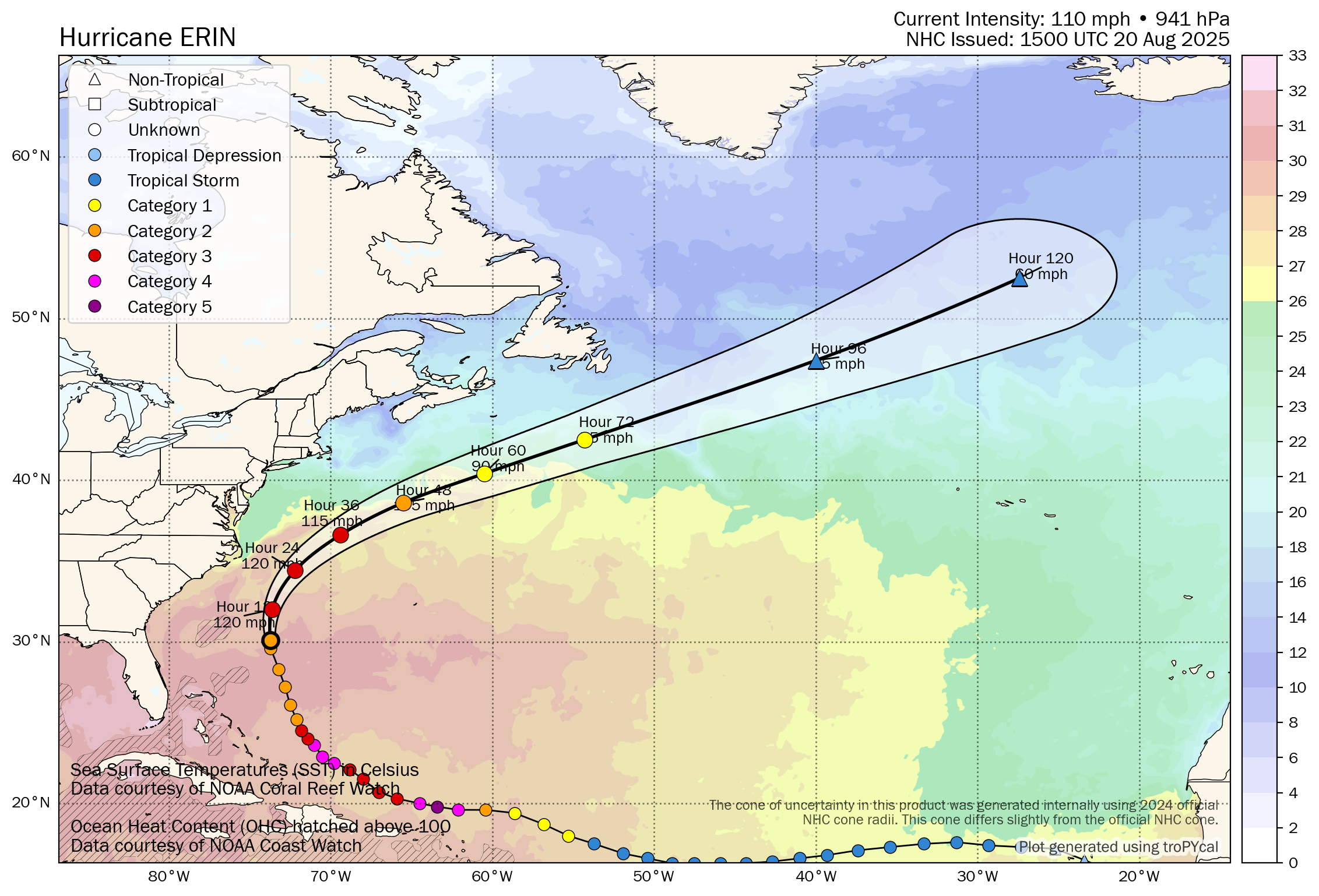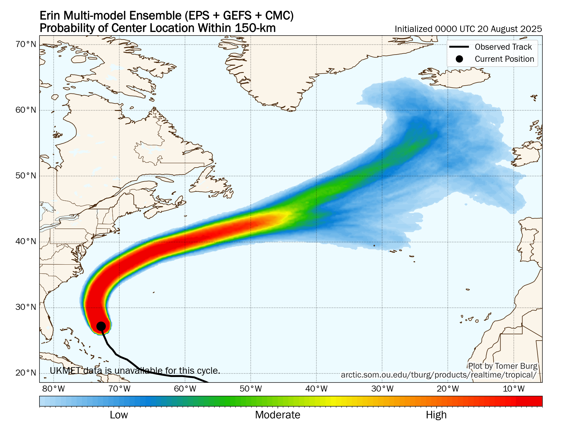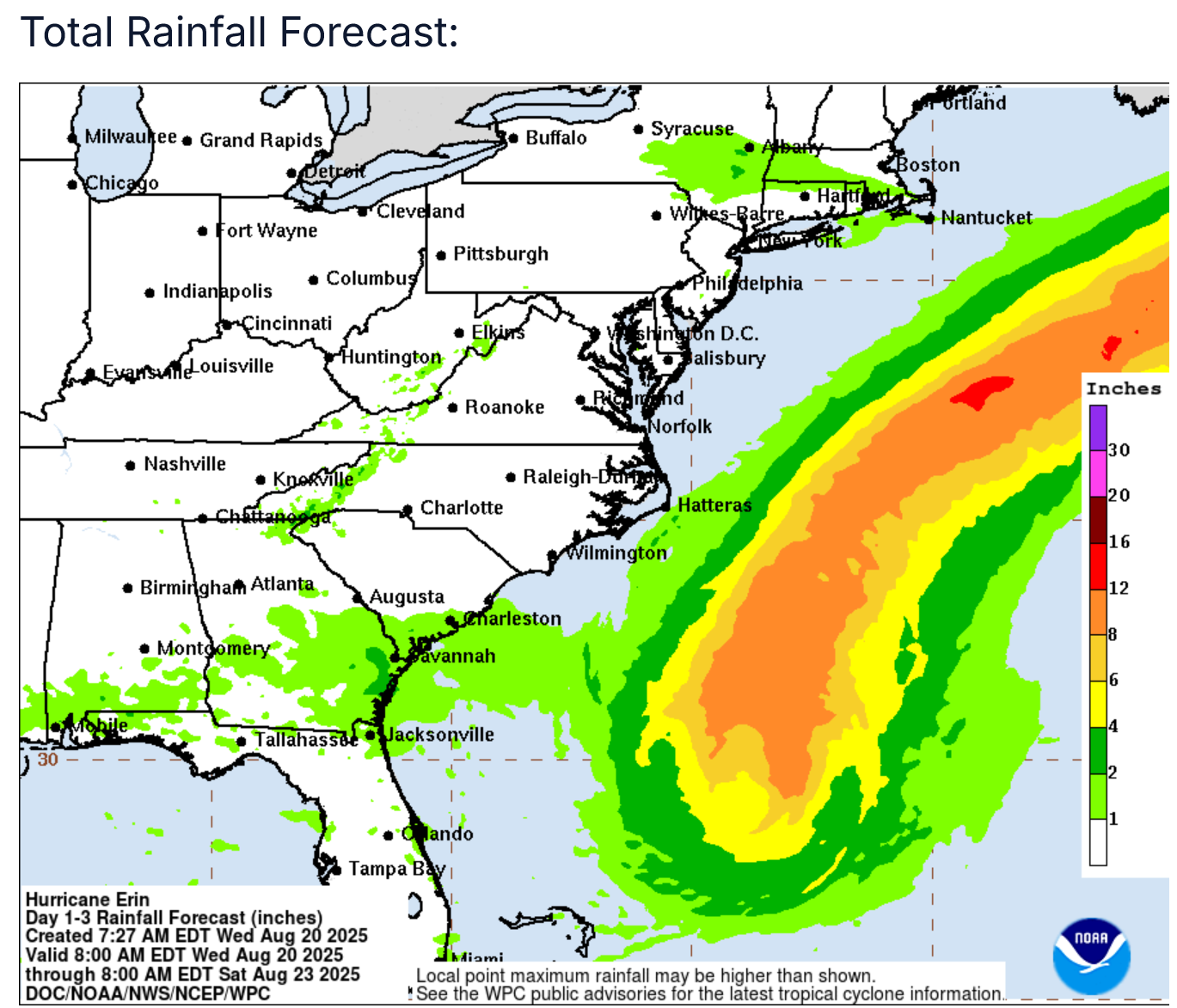 For Atlantic Canada: Erin is very likely to pass well south of Nova Scotia and Newfoundland to not be a threat in terms of wind or rain. The main threat from Erin for Atlantic Canada looks to be very large waves, rough surf and rip currents late this week through this weekend.