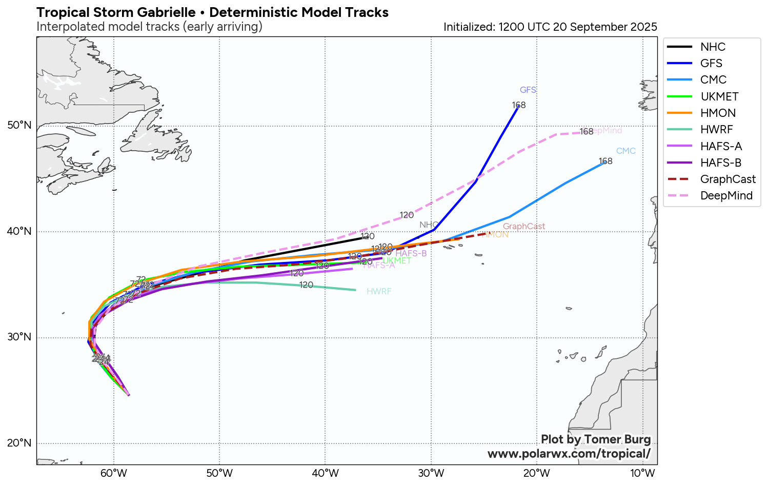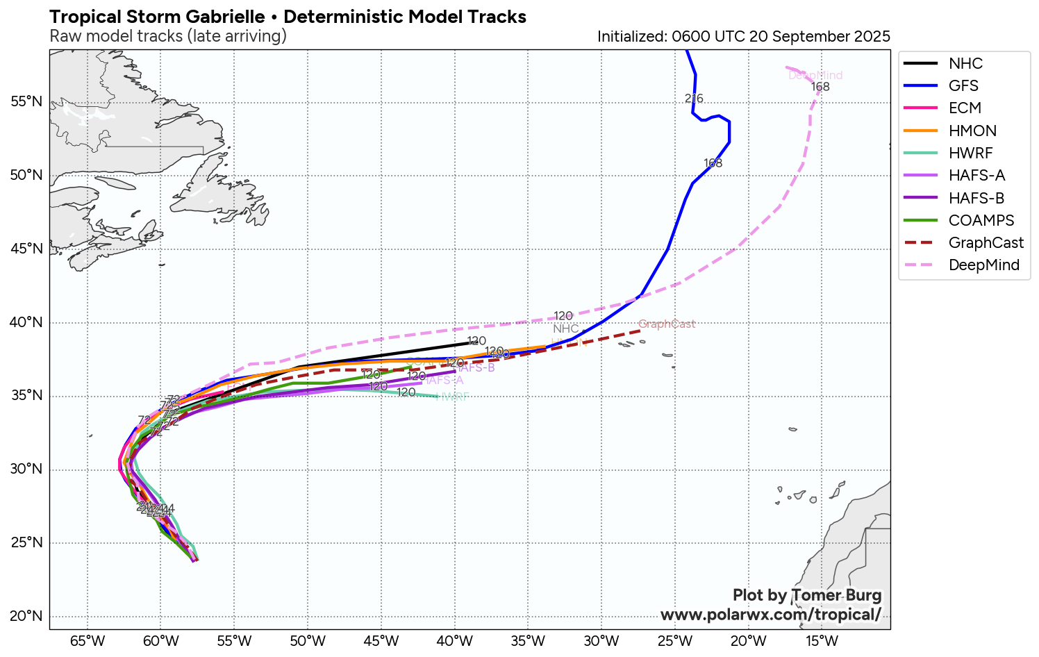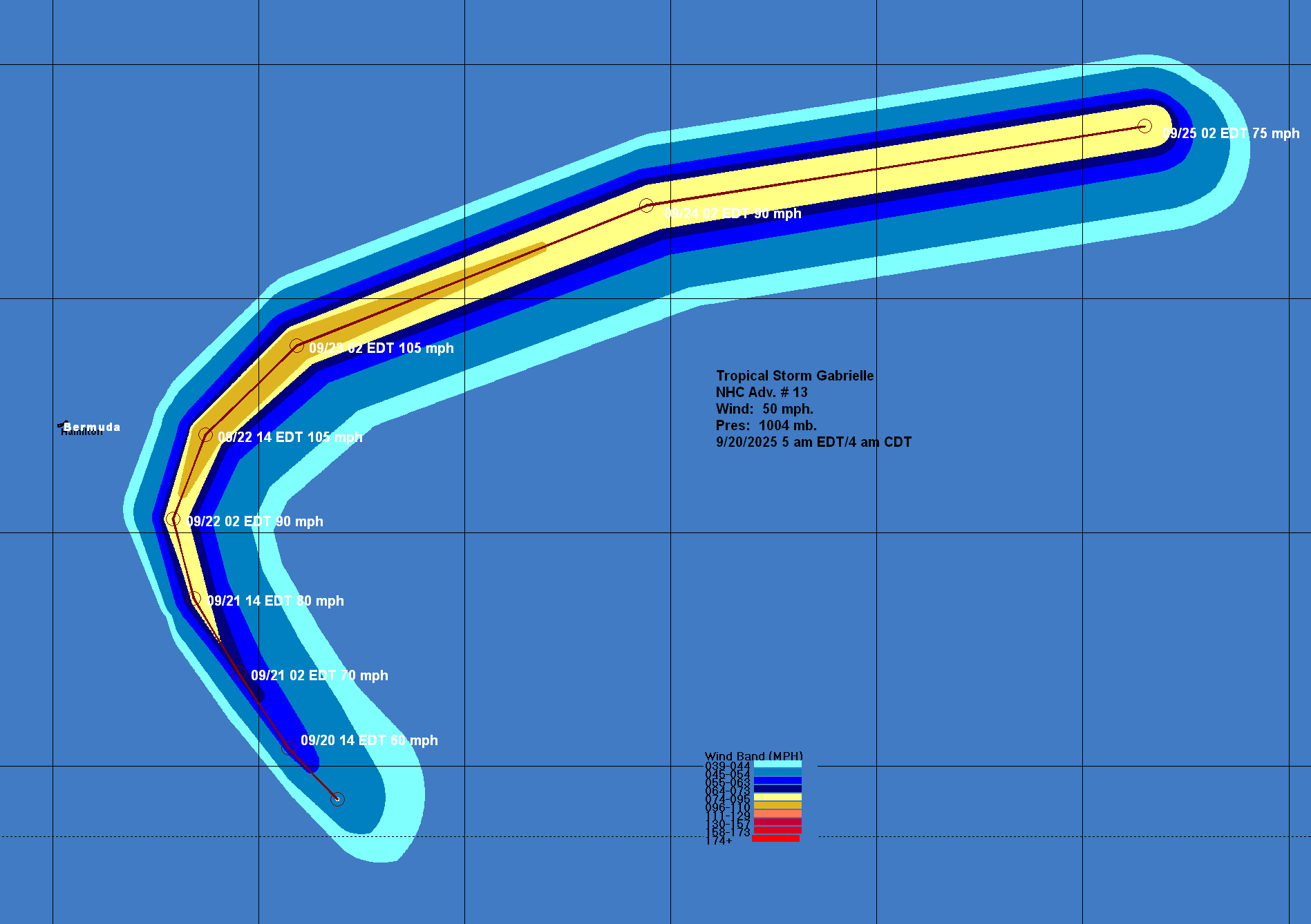 Not only does it look likely that Gabrielle will not be a threat to the Bahamas or the United States, but it also looks likely now that Gabrielle will pose no significant threat to Bermuda. That said, Gabrielle may still produce some rough surf and rip currents to Bermuda during the early part of next week.