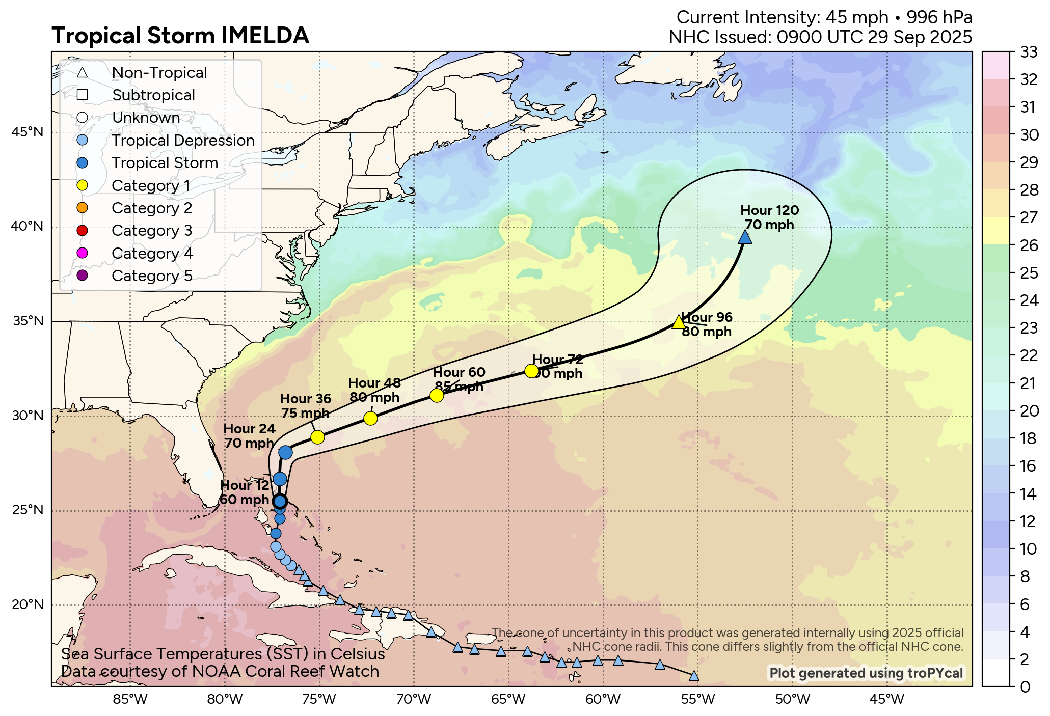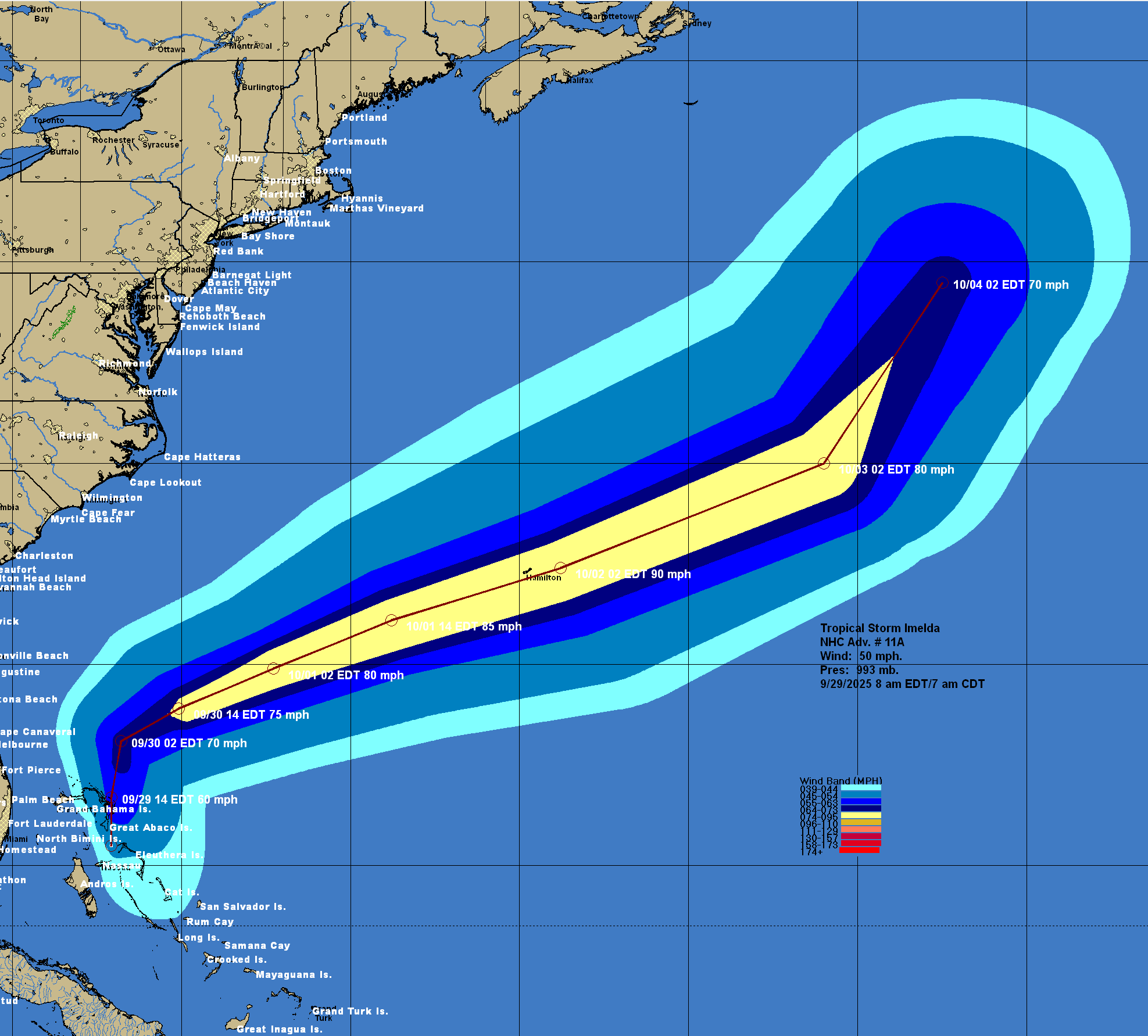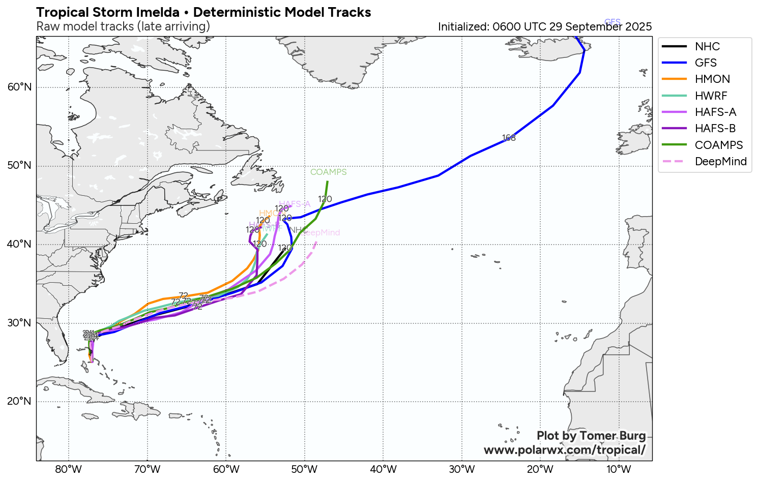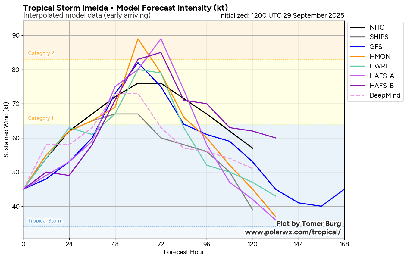 This means that it is all but guaranteed that Imelda will stay well offshore of the US Southeast Coast. This also means that Imelda is now expected to directly impact the island of Bermuda as a Category 1 or 2 hurricane on Wednesday night into Thursday morning.