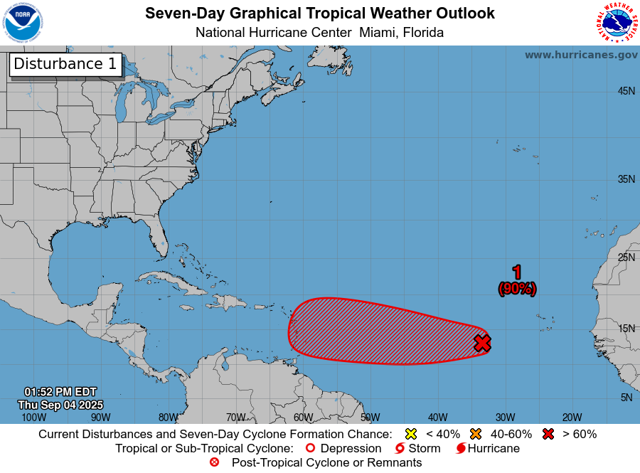 The GFS model has been wildly inconsistent with its forecasts of Invest 91-L for the last several days. For the last few runs, however, the GFS model has trended further south with its forecast of this system & now seems to be inline with the European model and the Google Deepmind AI models. The most recent 12Z forecast run of the GFS model now shows Invest 91-L impacting most of the Leeward Islands and the northern Windward Islands as a hurricane late next week & then directly impacting the Virgin Islands and Puerto Rico as a hurricane next weekend. From there, the GFS model has trended towards a higher threat now to the Bahamas, Florida & the Southeastern United States between about September 16 and September 18.