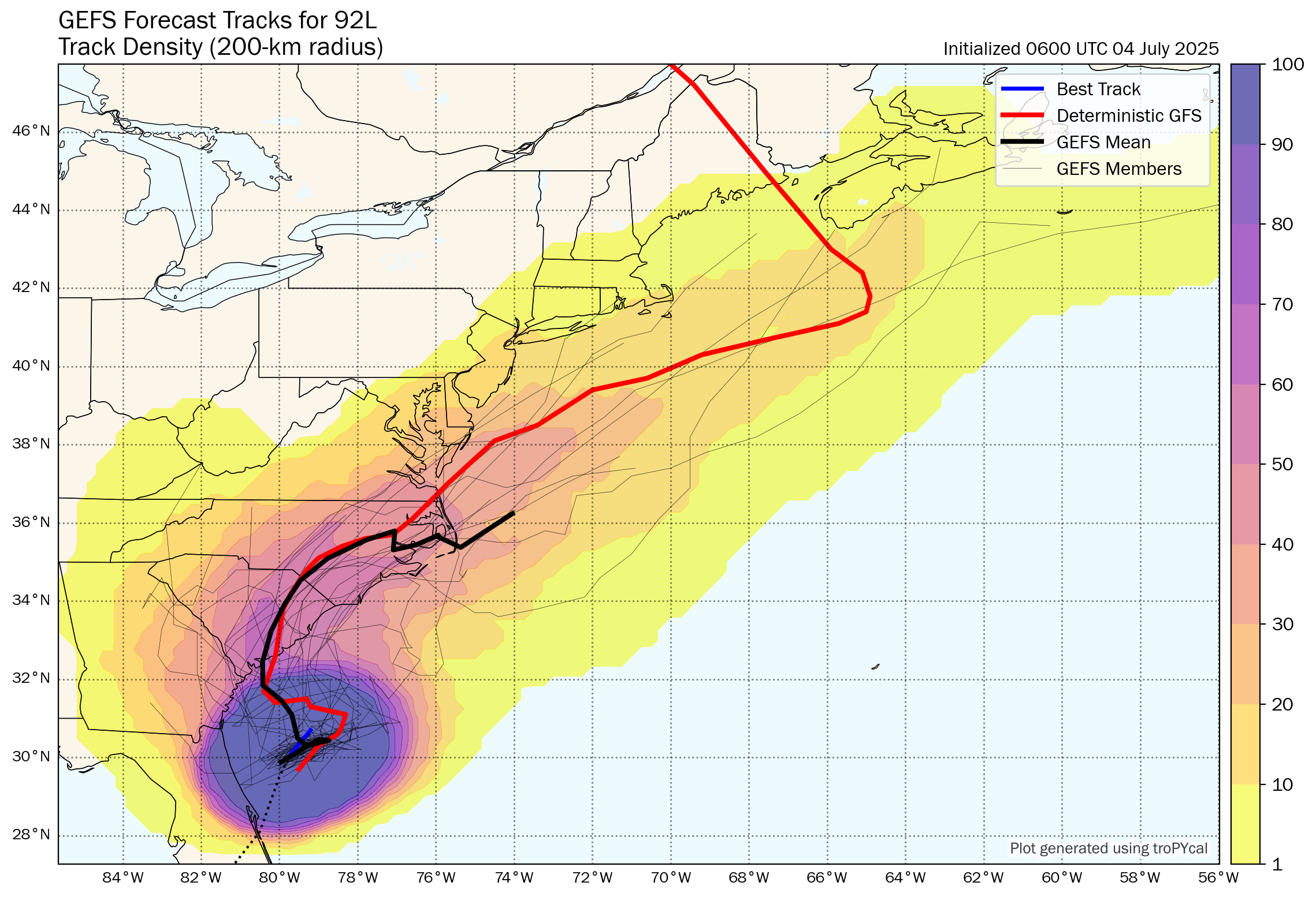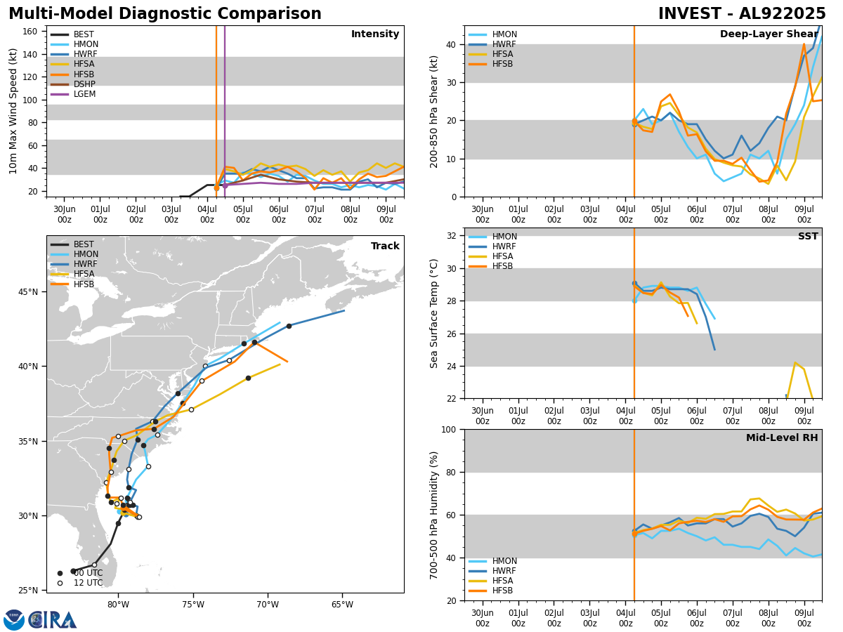I also wanted to mention that the model guidance forecasts that Invest 92-L may reemerge off of the North Carolina or Virginia coastlines on Tuesday and then head northeastward tracking either very near Cape Cod, Massachusetts or offshore of southeastern New England around Wednesday where some of intensity guidance forecasts re-intensification into a tropical storm.