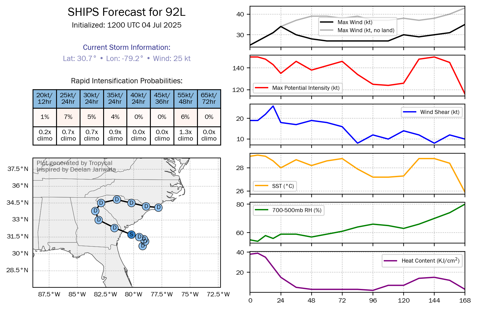 I then expect Invest 92-L to come ashore along the South Carolina coast very near Charleston either during later Saturday night or during Sunday morning as a tropical storm with 40-45 mph winds.