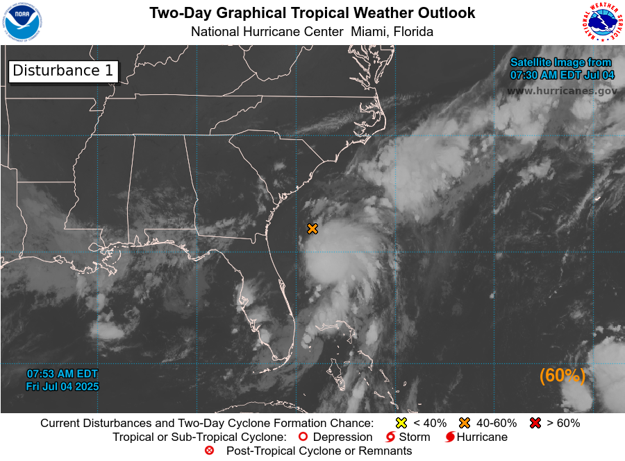 Invest 92-L Located About 100 Miles Offshore Of The Coast Of Northeast Florida: It looks like we have a developing tropical system off of the northeast Florida coast today. In fact, I think the chances are high that Invest 92-L will be a tropical storm by the time it comes ashore along the South Carolina coast on Sunday.