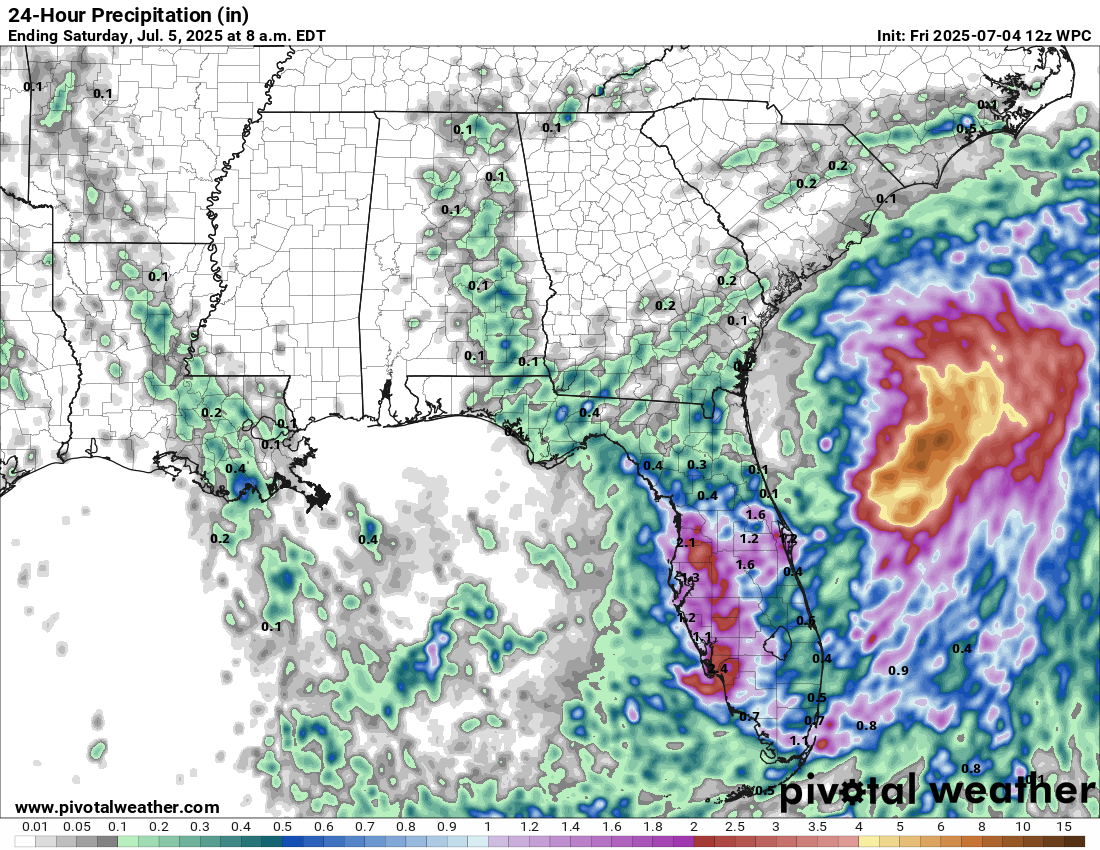 Additional rainfall amounts of 1 to 3 inches can be expected throughout the rest of today along Florida’s west and southwest coasts, as well as along the I-4 corridor from Tampa through Orlando & also across Florida’s Space Coast.