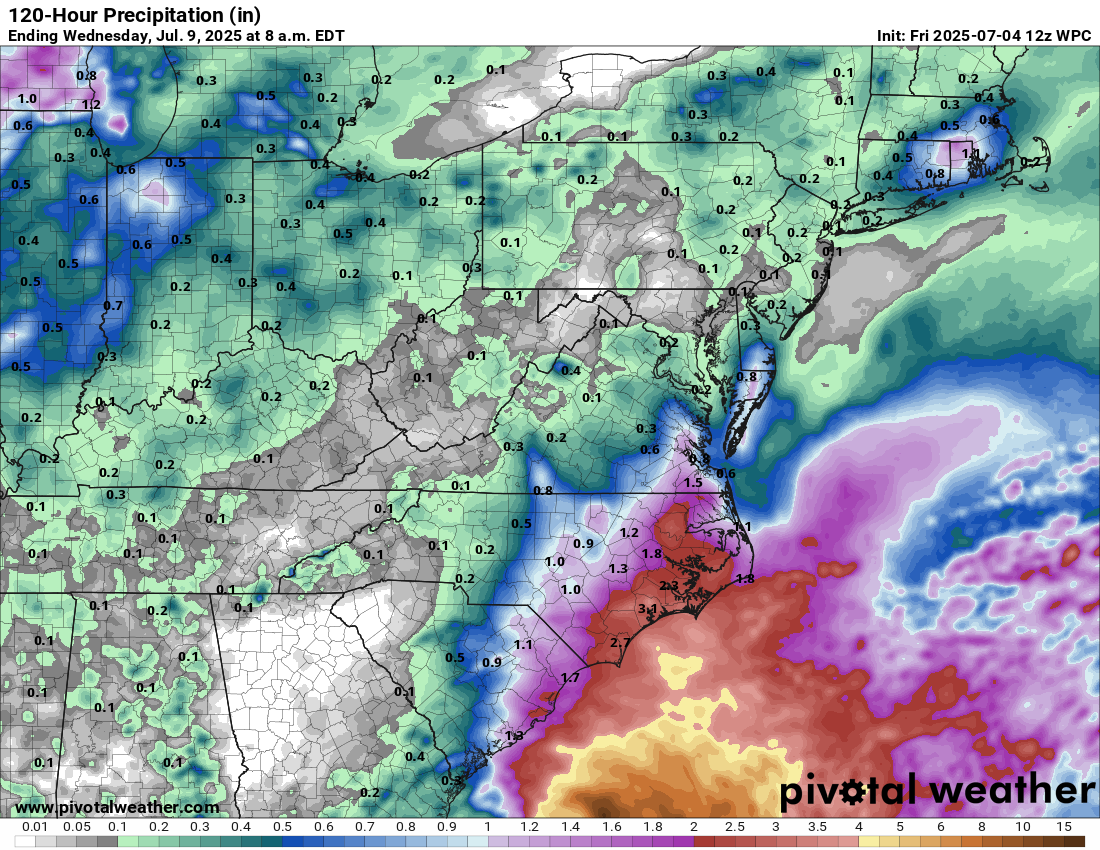Turning to the coastal Carolinas, locally heavy rain is expected throughout Saturday and Sunday, especially across northeastern South Carolina and eastern North Carolina where 2 to 4 inches of rain can be expected.