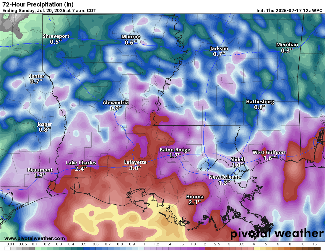 What Invest 93-L will do is produce several rounds of heavy rainfall across southern Louisiana throughout the rest of today right through Friday.