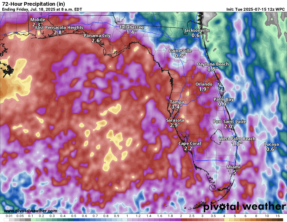 Additional rain totals of 1 to 3 inches with local amounts of up to 4 to 6 inches expected across Central and South Florida over the next couple of days or so. This additional rain is probably going to lead to additional localized flood issues across Central and South Florida.