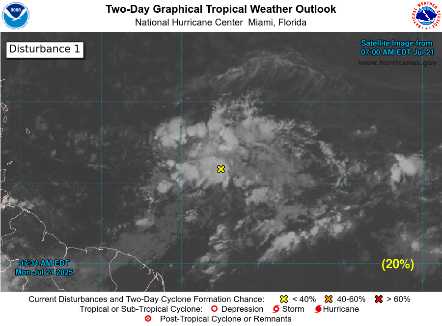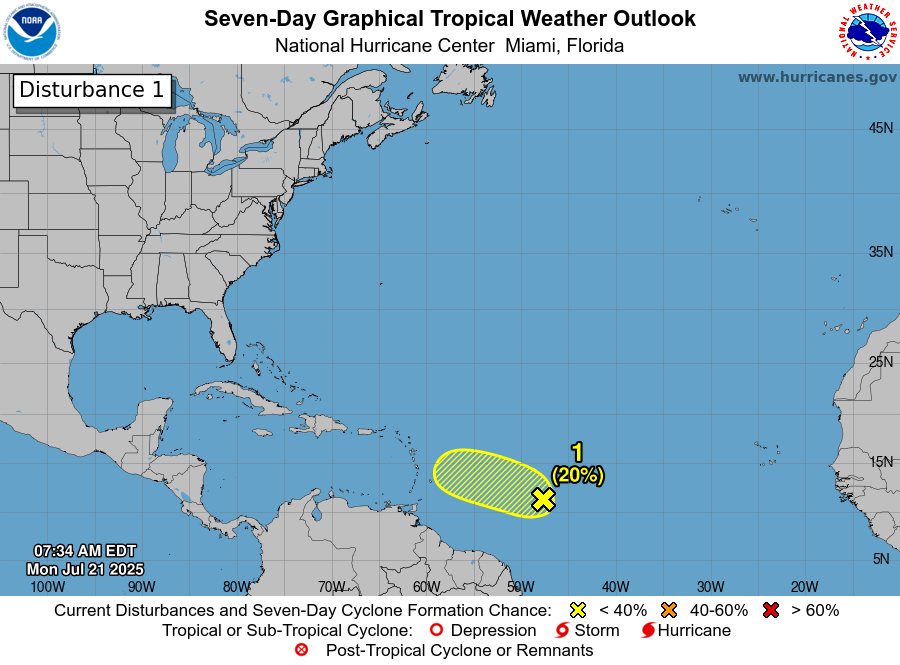 Invest 94-L Located 700 Miles ESE Of The Lesser Antilles Likely Will Not Develop As It Heads For The Islands Of The Eastern Caribbean; Northern Gulf Disturbance Will Bring Enhanced Rainfall To The Northern Gulf Coast Mid To Late Week