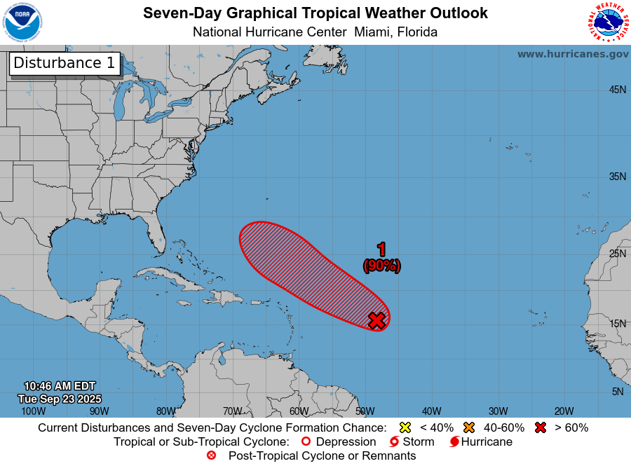 This means that those of you in the Windward and Leeward Islands will continue to see occasional squally weather throughout the rest of today into tonight. This squally weather will affect much of the Virgin Islands, Puerto Rico and Hispaniola throughout Wednesday and will probably last into Thursday.