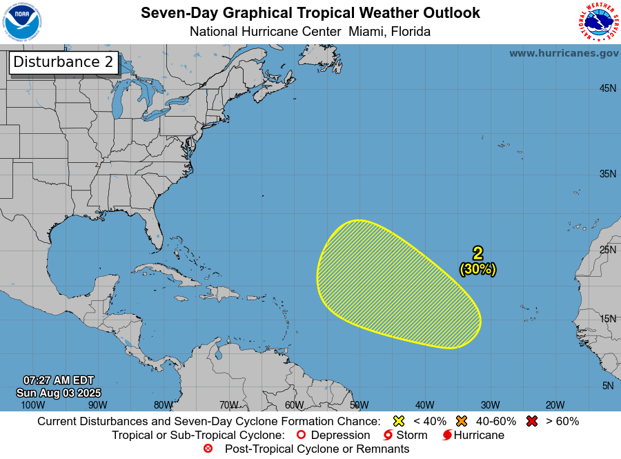 The Google Deep Mind AI weather model has a large spread in where it thinks any system that forms this week over the central Tropical Atlantic. Some of its ensemble members show a safe track out into the open Atlantic well away from the Caribbean, the Bahamas or the US East Coast. Other members do threaten the northeastern Caribbean by next week and then go on to threaten the Bahamas by about August 12.