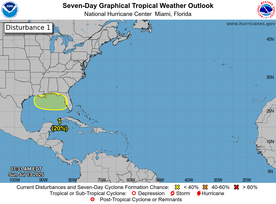 Once this disturbed weather reaches the northeastern Gulf on Wednesday, it is expected to find itself in an environment that’s somewhat favorable for development. This means that this disturbed weather has a chance, at least, to develop into a tropical depression or a tropical storm as it heads westward across the northern Gulf later this week.