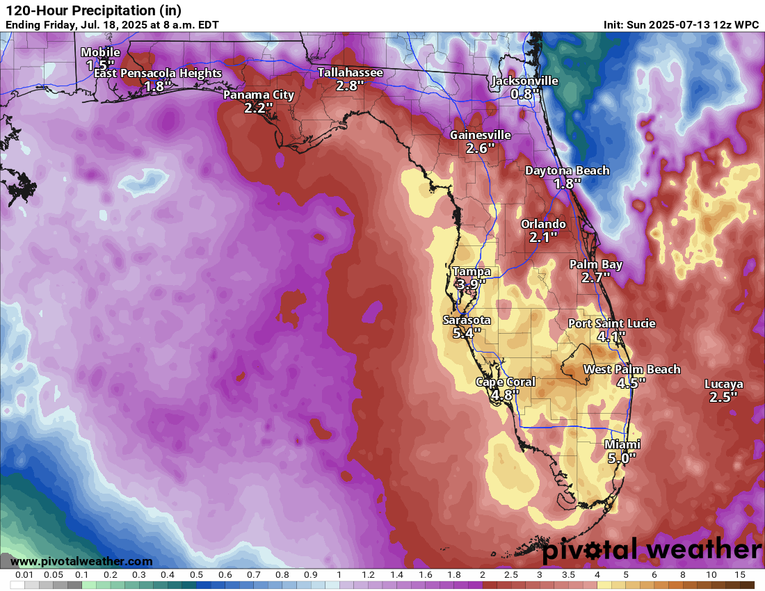 Finally, it should be noted that this system is expected to bring some drought relieving heavy rain across much of the Florida Peninsula beginning as soon as later tonight and Monday and continuing through Thursday. Rainfall totals of 5 to 10 inches are likely across much of Central and South Florida with 2 to 5 inches of rainfall anticipated across north Florida. These rainfall amounts will very likely lead to flash flooding, especially across Central and South Florida where the highest rain amounts will be.