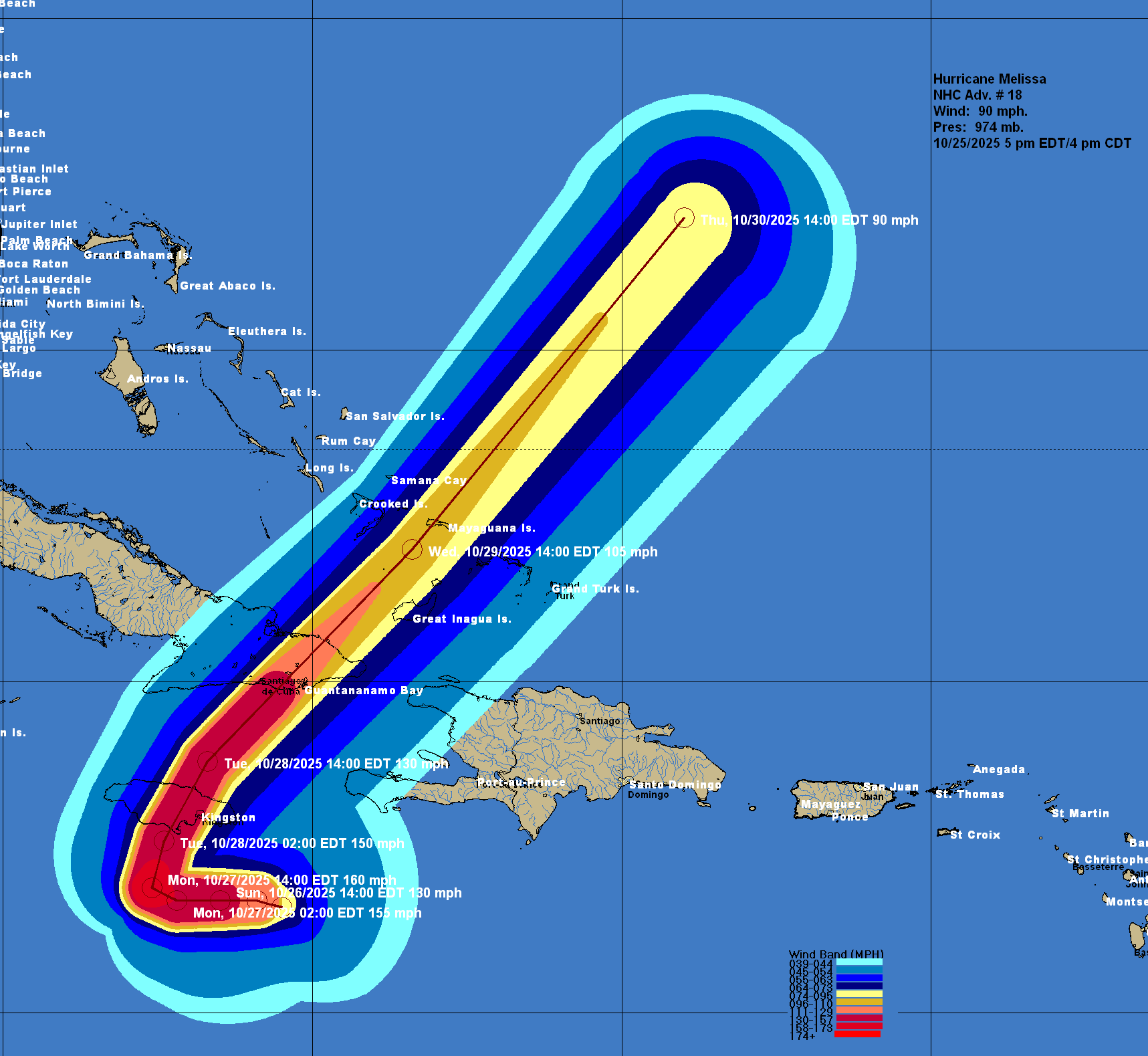 It is extremely evident on satellite imagery that Melissa is wrapping up quickly and it is now undergoing rapid strengthening. I fully expect it to be a major Category 3 hurricane by either late tonight or sometime on Sunday morning. Even more rapid strengthening will likely occur as we get into later Sunday and Monday & because of this, it looks extremely likely now that Melissa will be a Category 4 or Category 5 hurricane when it directly impacts Jamaica on Tuesday.