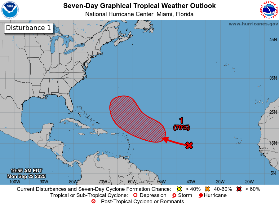 Looking beyond this, the model guidance all agree that this disturbance could move into an environment north of the Caribbean that is favorable for development. Because of this, we could have a tropical storm or a hurricane that tracks further west than what Gabrielle is currently tracking. This means that this particular disturbance could eventually become a threat to Bermuda around early next week.