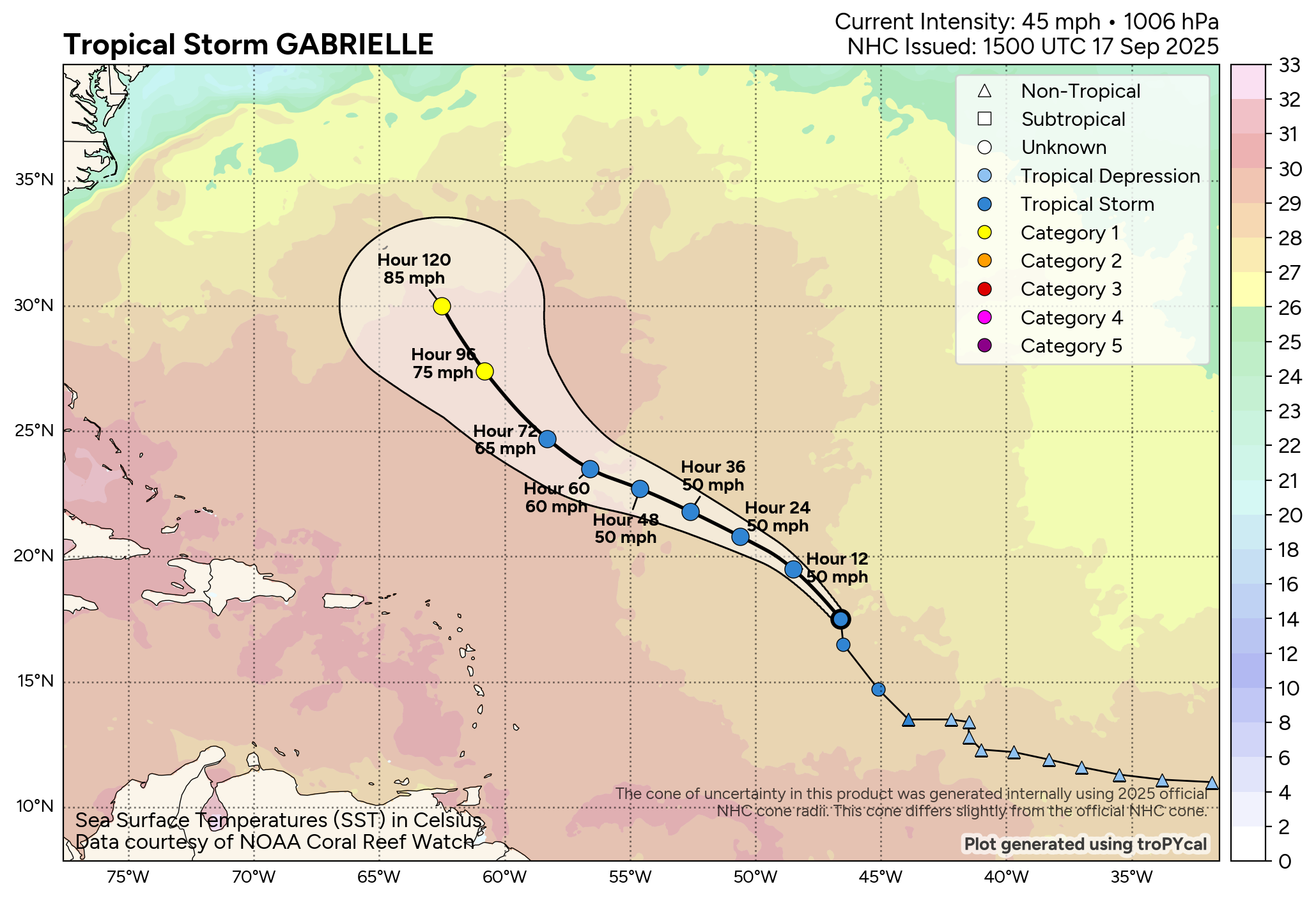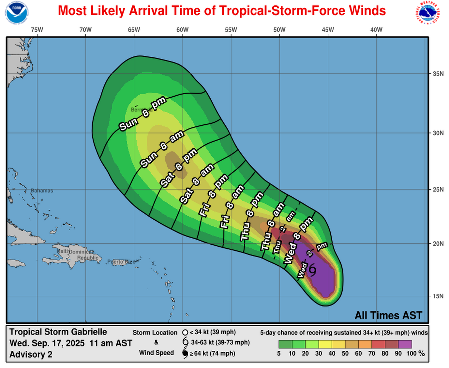 Tropical Storm Gabrielle Has Formed Over The Central Tropical Atlantic & Bermuda Should Continue To Closely Watch This System