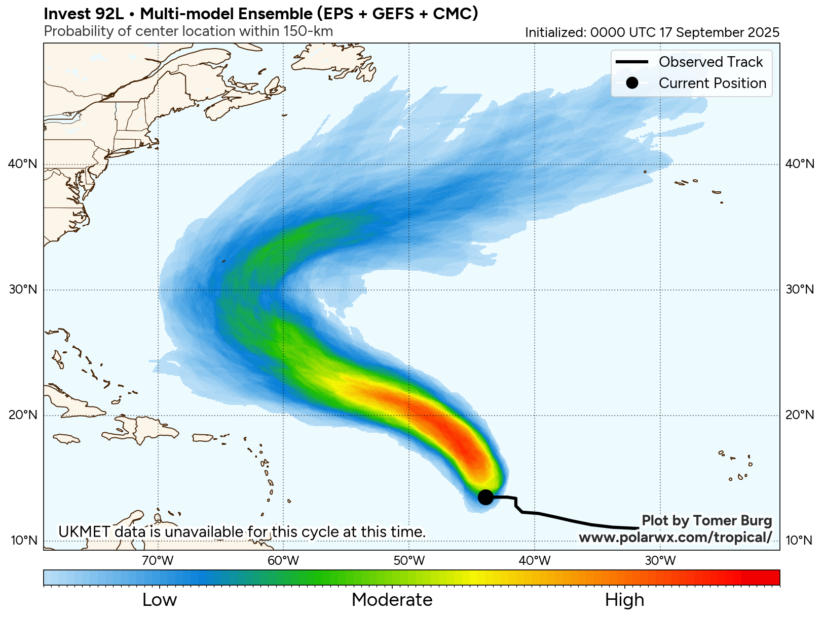 Beyond this, it continues to look quite possible that this system will be a threat to the island of Bermuda around Tuesday of next week. Also, this system is probably going to struggle to strengthen over the next few days due to moderate amounts of wind shear & ingestion of dry air. Once we get into this weekend and early next week, however, this system may move into an environment that’s more favorable for strengthening & because of this, Bermuda may have a hurricane threat around Tuesday of next week. The uncertainty lies to whether the depression will track directly over the island or pass to the east of the island. My recommendation to those of you in Bermuda is to monitor this system extremely closely over the coming days.